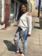 Stay warm while showing a little skin! This cold shoulder sweater will brighten up any room. Light weight, excellent quality, and it's made in the USA.